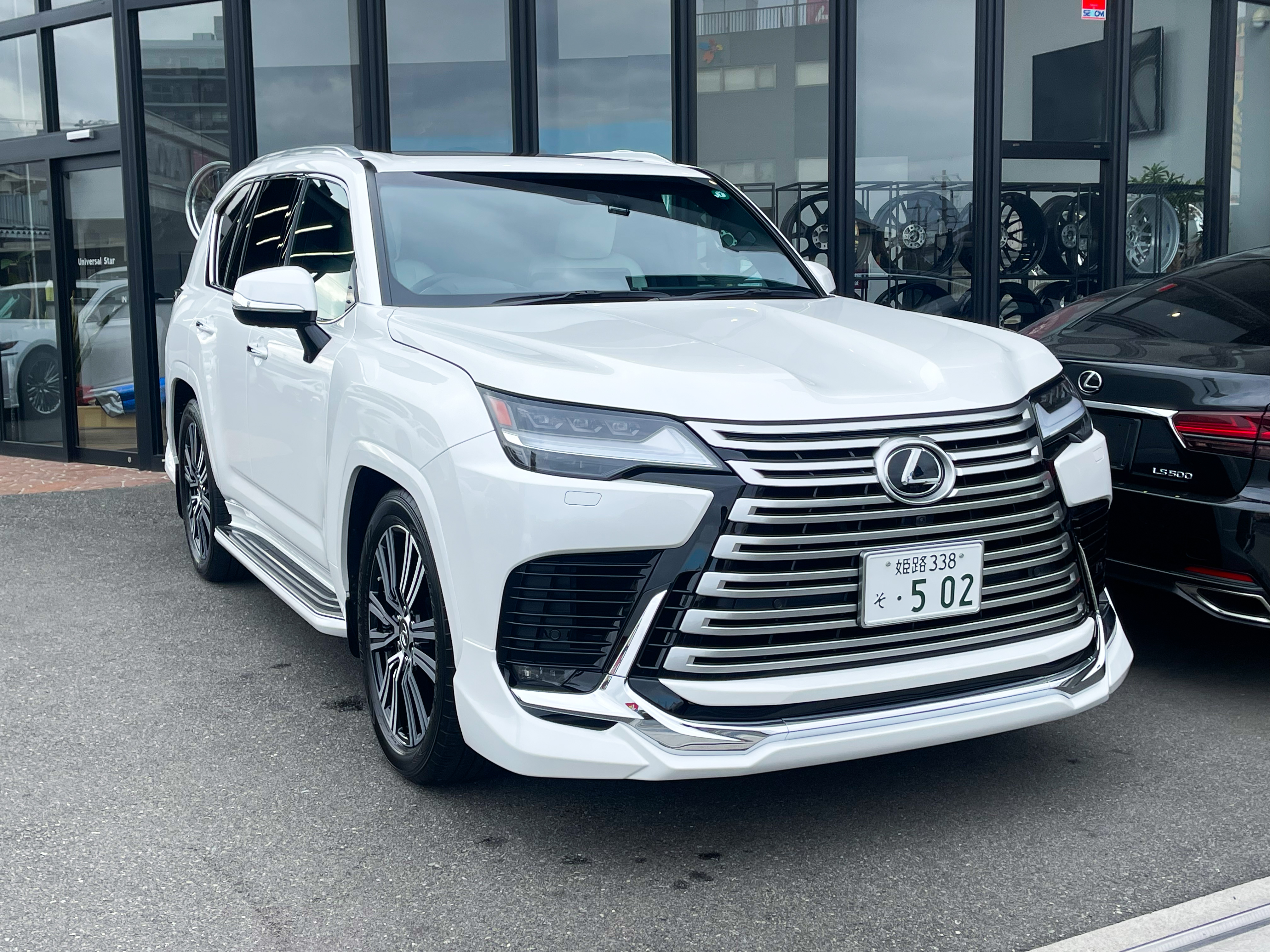 レクサスLX600 モデリスタ 22インチオプションホイール レクサスLXのご成約、誠に有難うございました! 弊社では数多くのレクサス車を揃えておりますので、LX600をご検討のお客様はどうぞお気軽にお問い合わせください! またオリジナルブランドUNIVERSAL DESIGNではLX600 モデリスタエアロ用のオーバーフェンダーから専用サイズの24インチホイールやノーマルフェンダーサイズの22インチまで幅広くパーツも揃えておりますので、エアロやホイールをご検討の方はどうぞお気軽にお問い合わせください!
